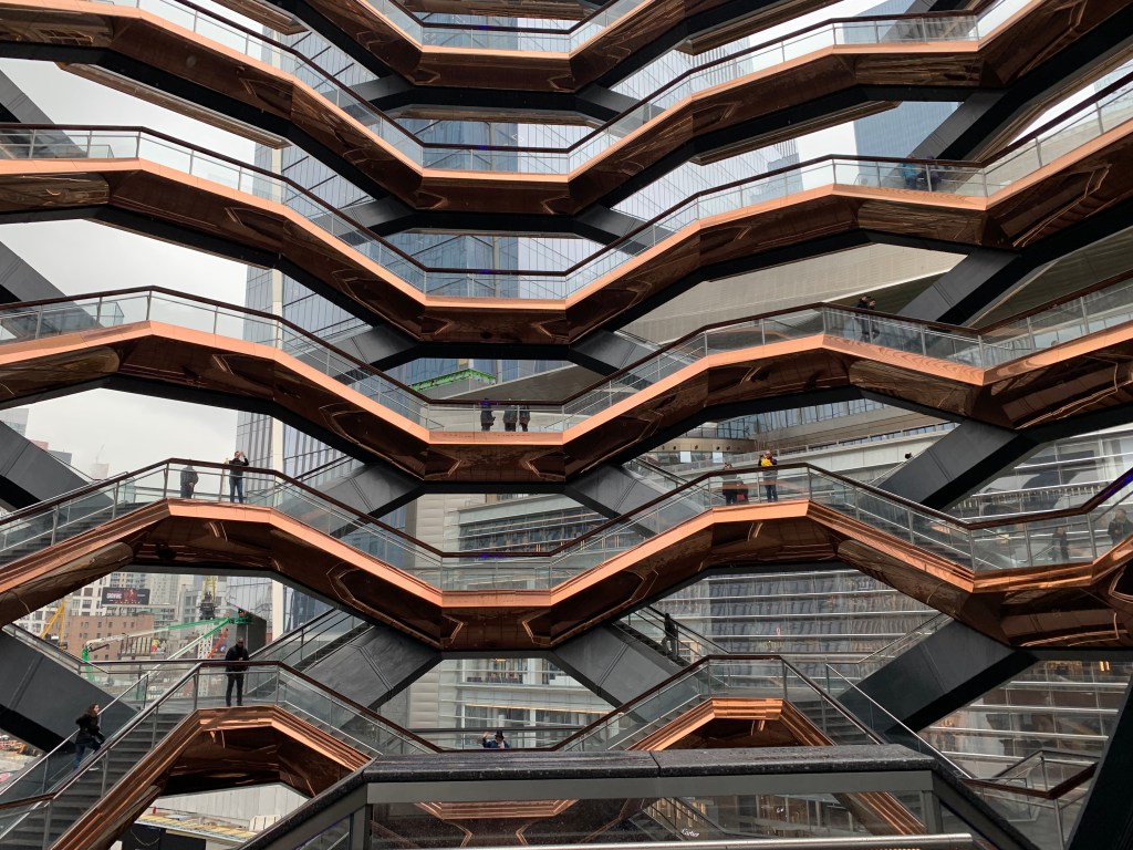 A peça central extraordinária do Hudson Yards é a sua escada em espiral, um marco novo e crescente destinado a ser escalado. Esta peça de design interativo foi imaginada por Thomas Heatherwick e Heatherwick Studio como um ponto focal onde as pessoas podem desfrutar de novas perspectivas da cidade e de diferentes alturas, ângulos e pontos de vista.
