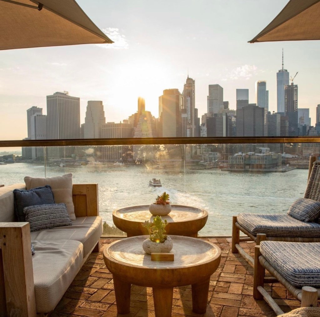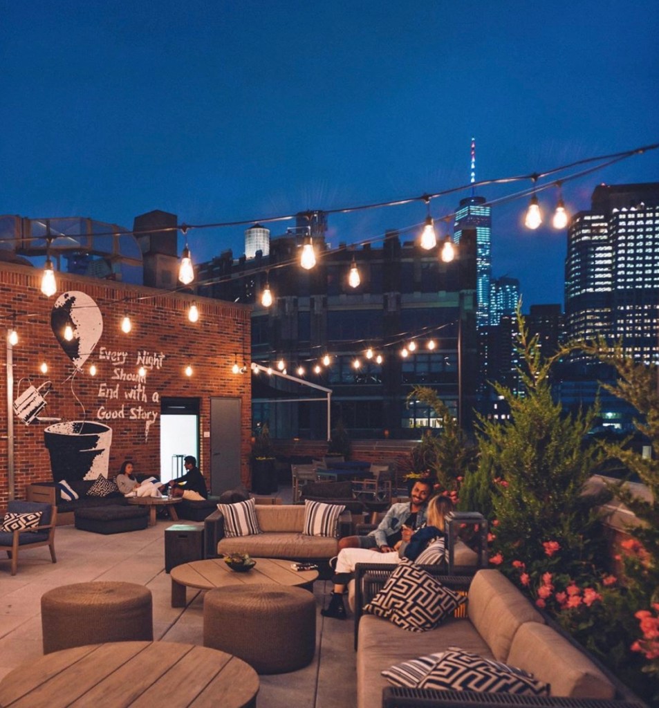 Scenic bar atop The Hoxton hotel for lobster rolls, craft cocktails & Hamptons vibes.