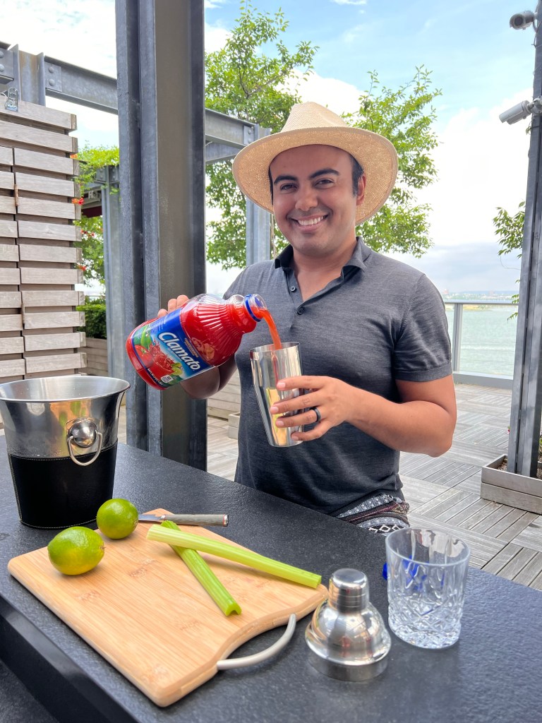 - Fill with Clamato and beer.