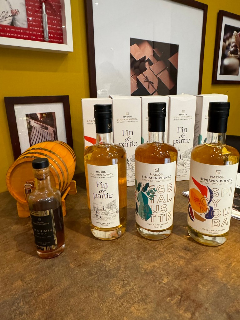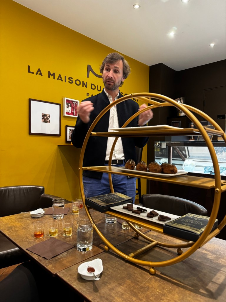 The evening’s highlight was a hands-on tasting session led by Cloiseau and Kuentz. We sampled the Alchimie chocolate bars, which had been re-melted for the occasion, alongside two whiskies aged in the same barrels. This allowed us to fully appreciate the interplay of flavors between the chocolate and the whisky.