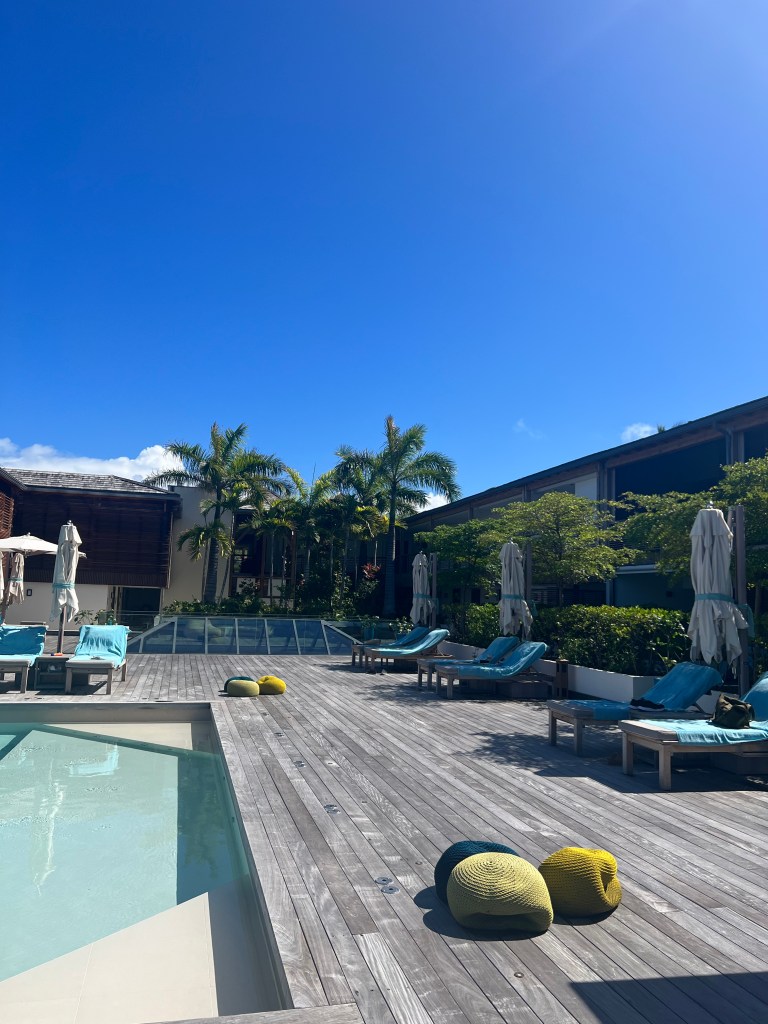 Le Barthelemy boasts the longest beach with the most beach chairs and tables set up. The food was wonderful at the beach club and Amis restaurant. I had excellent pastries every morning at the breakfast buffet and delicious iced coffee by the pool while I did my meditation breathwork.