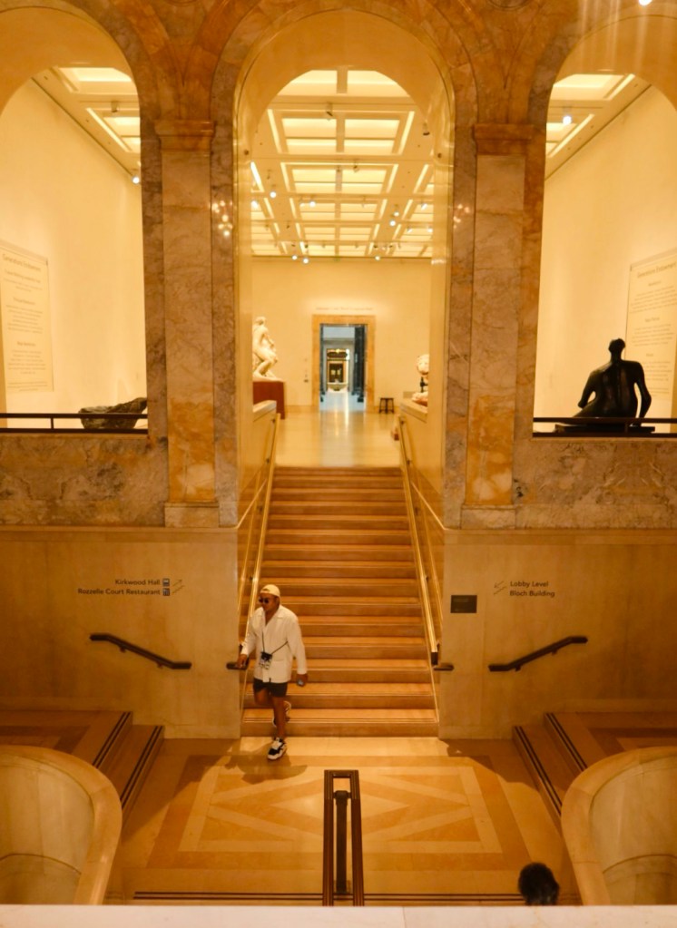 The museum’s exterior is a masterpiece in itself. The neoclassical design, featuring grand columns and expansive lawns, sets a majestic tone for what lies inside. The recent addition of the Bloch Building, designed by architect Steven Holl, adds a modern twist with its innovative use of glass and natural light, creating a striking contrast with the classic style of the original building.