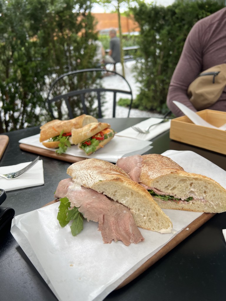 And I cannot forget the Pan Bagnat Sandwich. Tuna, olives, capers, preserved lemon, tomatoes, summer radishes, arugula, red onion, and a perfectly sliced hard-boiled egg—it’s the kind of sandwich that reminds you why simple ingredients can be so extraordinary.