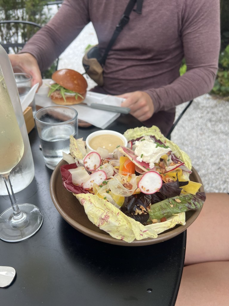 Let’s talk food, because you know I will. We kicked things off with the Seasonal Market Salad—a vibrant burst of color and freshness, just as nature intended. Think shaved fennel, carrots, radishes, and feta, all brought together with the crunch of toasted almonds and a zesty homemade mustard vinegar dressing. Pure bliss on a plate.