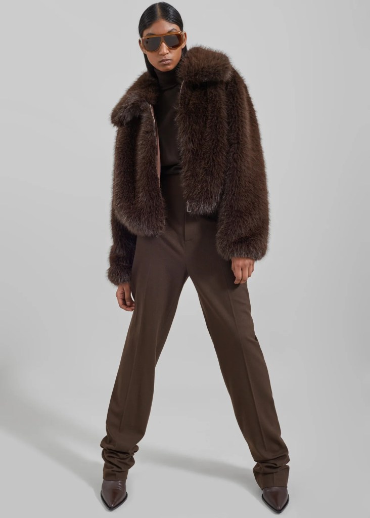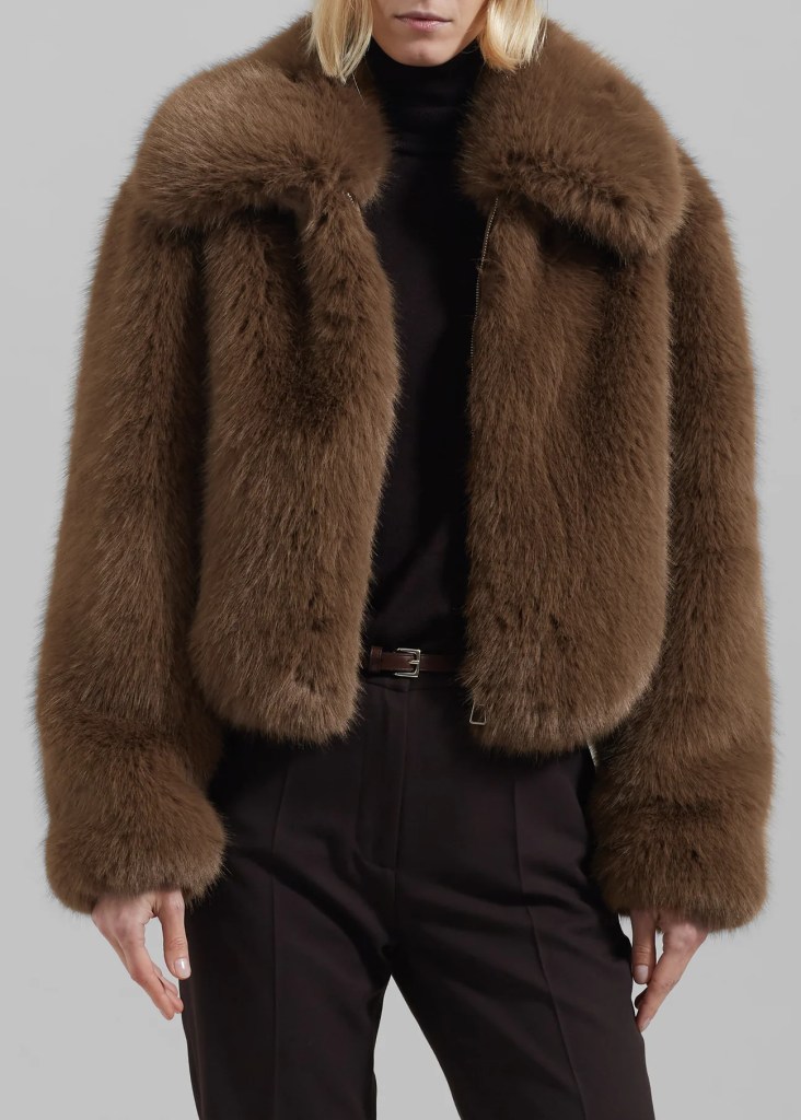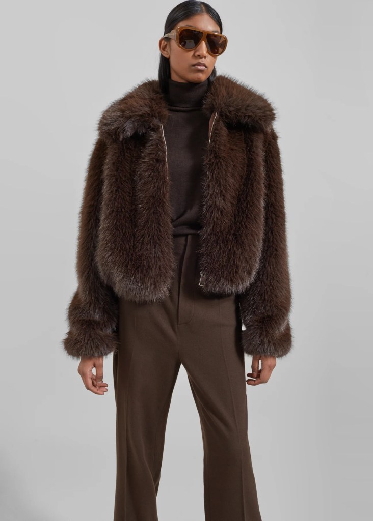Nothing says luxury like a faux fur coat, and Frankie Shop delivers the perfect option with their Hope Faux Fur Jacket. Available in four stunning shades—two shades of brown, burgundy, and black—this coat is the epitome of cozy sophistication. Throw it over a sleek evening dress or a casual jeans-and-tee outfit to instantly elevate your look. It’s a must-have for braving the cold in style.