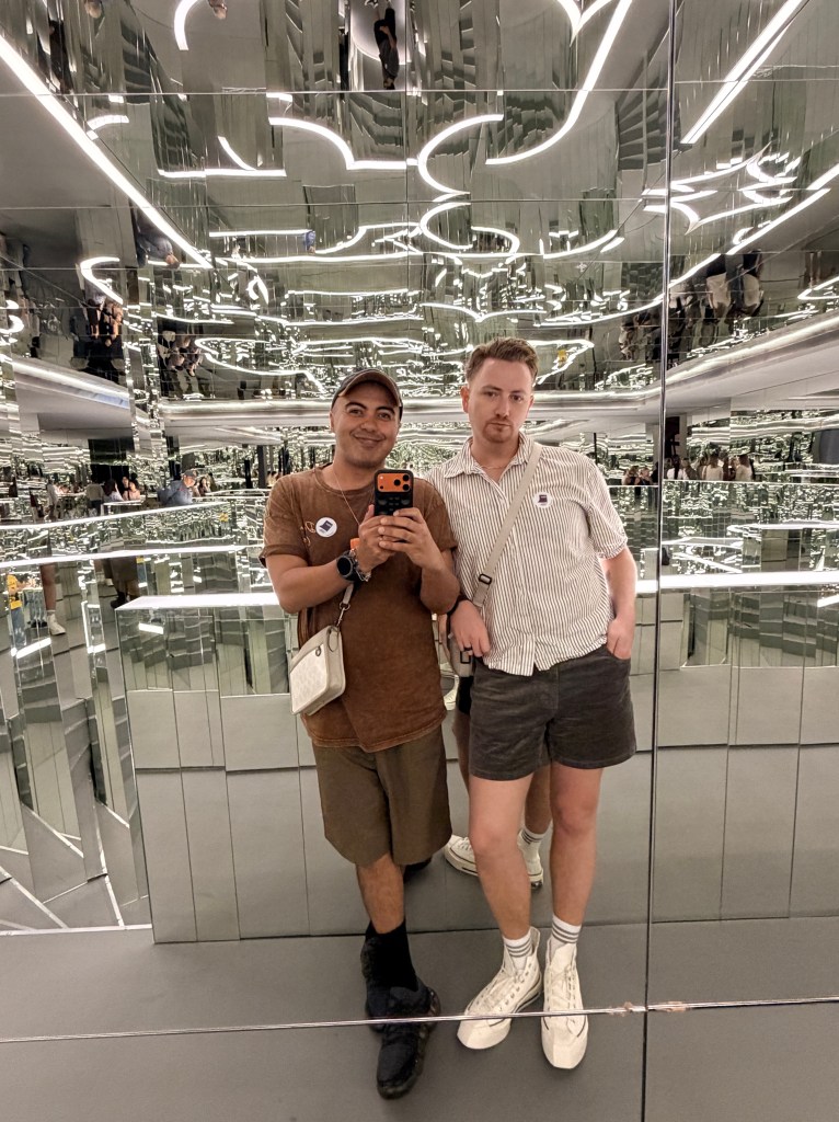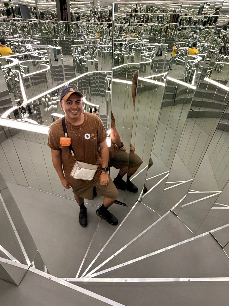 The first room that really stopped me in my tracks was a labyrinth of mirrors. Everywhere I turned, my reflection — and fragments of it — multiplied and shifted. It was playful, a little dizzying, and deeply haunting. Who am I when my image is split into infinite versions of myself?