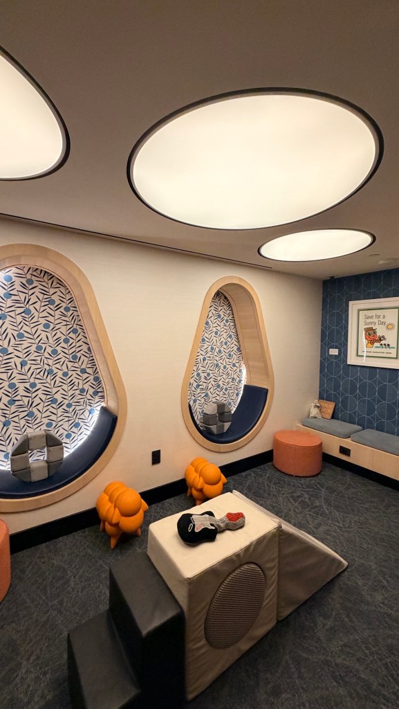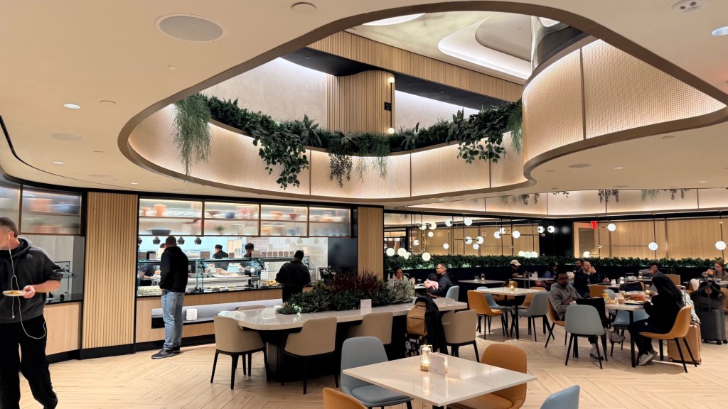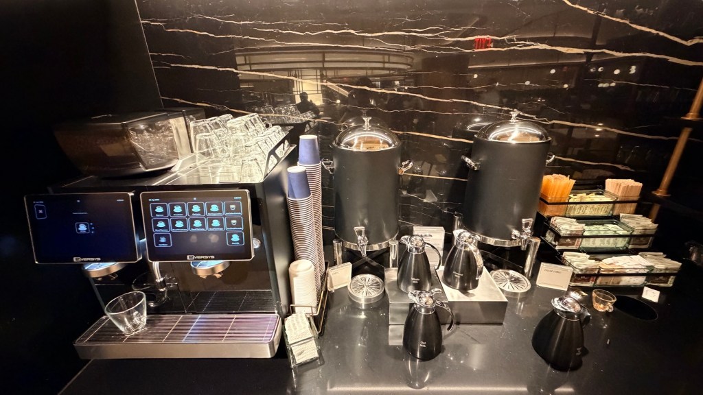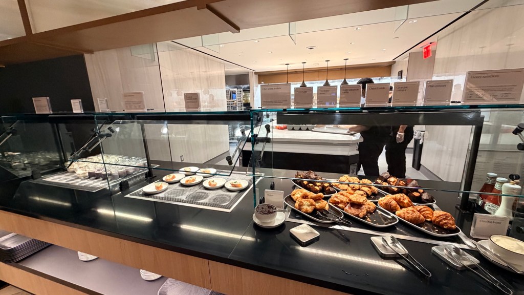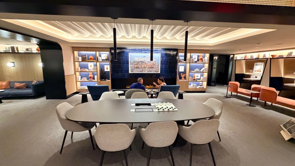 Many travelers describe it as feeling more like a luxury hotel lobby than a lounge, with thoughtful design and plenty of seating areas.